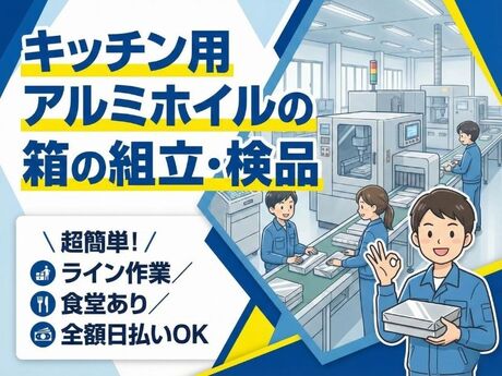 【ア】◇キッチン用アルミホイルの箱の組立・検品◇超簡単!/ライン作業/食堂あり/全額日払いOK